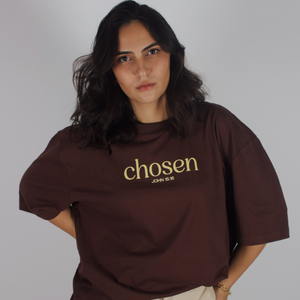 Camiseta Oversized "CHOSEN – JOÃO 15:16" – "Não fostes vós que me escolhestes a mim; pelo contrário, eu vos escolhi a vós." Essa camiseta carrega uma das verdades mais lindas das Escrituras: fomos escolhidos por Deus. Com um design minimalista e forte, ela é perfeita para quem deseja expressar sua fé com autenticidade.