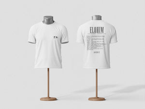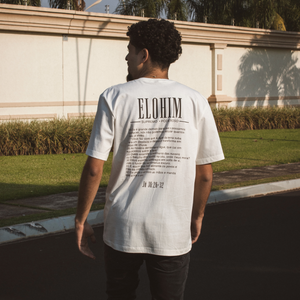 Camiseta Tradicional "ELOHIM" – Confeccionada em 100% algodão fio 30.1 penteado, essa camiseta básica combina conforto e durabilidade. A estampa "ELOHIM", com uma referência ao versículo de Jó, exalta Deus como o Supremo e Poderoso. Simples, direta e cheia de significado, perfeita para quem quer carregar uma mensagem de fé no cotidiano. Garanta a sua agora! Envio rápido e seguro.