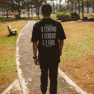 Camiseta Oversized "JESUS SAVES" – Feita com 100% algodão fio 30.1 penteado, essa peça oversized oferece um estilo despojado e moderno. A mensagem "JESUS SAVES" na frente, e o versículo de João 14:6 nas costas, "Jesus é o caminho, a verdade e a vida", tornam essa camiseta uma poderosa declaração de fé. Perfeita para quem busca conforto e autenticidade. Compre a sua agora e espalhe essa verdade! Envio rápido e seguro.
