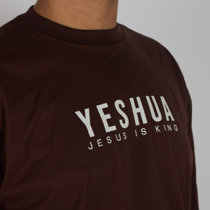 Camiseta Oversized "YESHUA – JESUS IS KING" – Confeccionada em 100% algodão fio 30.1 penteado, essa camiseta une conforto e significado. A estampa "YESHUA – JESUS IS KING" declara, de forma direta e poderosa, a soberania de Cristo. Com um design minimalista e impactante, essa peça é ideal para quem deseja expressar sua fé com autenticidade e estilo.